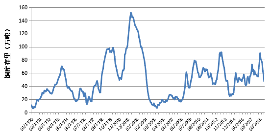 图1-7 1990年以来铜库存变化情况