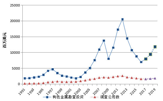 图1-3 1991年以来世界有色金属勘查投入变化